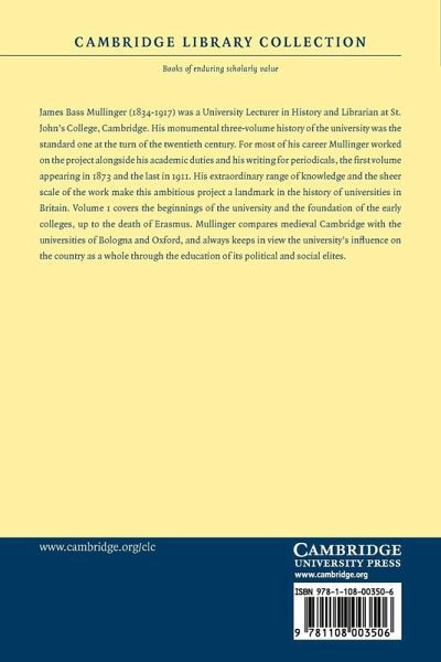 The first volume of this monumental late Victorian history, covering the early development of Cambridge University to 1535.
