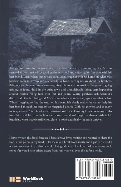 Things take a turn for the worst in what was once a carefree, fun, teenage life. Sixteen-year-old Ashton strived for good grades in school and enjoyed his free time with his best friend, Liam when things turned dark. Liam struggles with his home life when two brothers come into town and offer a helping hand. Feeling uneasy about the brothers, Ashton voices his concerns when everything spins out of control fast. People start going missing or found dead in the quiet town and unexplainable things start happening around Ashton filling him with fear and panic. Worry paralyzes Ash when it's discovered Liam is missing and Ash's father refuses to answer any questions that he has. While struggling to find the truth on his own, ASh slowly realizes he cannot help his best friend through his torment or misguided desires. With no answers, and so many more questions, Ash is filled with frustration and dread knowing his dad is hiding truths from him and his trust in him and those around Ash begins to shatter. Ash is left breathless when tragedy strikes too close to home and finally, the truth unravels.