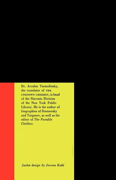From the introduction to The Unknown Chekhov: At least a dozen years were to pass [after Anton Chekhov's first short story published in English] before his tales began to gain some attention in the English-speaking world. ... [And yet] when work on the present collection was begun, scores of stories were still inaccessible in English, some of them comparable to those that have become a part of the literary heritage of the west. ... At the start of his career [Chekhov] turned out a great deal of copy for the comic papers [that] evidenced a genuine sense of fun, a satiric verve, an eye for revealing details of appearance and behavior, an ear for living speech, signs of that "talent for humanity," compacted of understanding and compassion, which is Chekhov's signature. ... From the first, the youthful humorist tried his hand at journalism... These breezy, gossipy, often biting paragraphs-he did not flinch from muckraking-touched on everything, from the unsanitary condition of the tenements to women's fashions. ... Wholly unknown [in English] were Chekhov's journalistic writings, as well as his book on the island of Sakhalin and its penal colony. The reader is offered here a selection from all of this material.