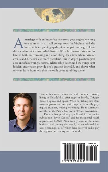A marriage with an imperfect love story goes tragically wrong one summer in a small college town in Virginia, and the husband is left picking up the pieces of pain and regret. How did it end in suicide instead of divorce? What he discovers six months later is both heartbreaking and astonishing. In a time when extreme events and behavior are more prevalent, this in-depth psychological account of a seemingly normal relationship describes how things kept hidden underneath provide one's greatest downfall, and shows what one can learn from loss after the walls come tumbling down.