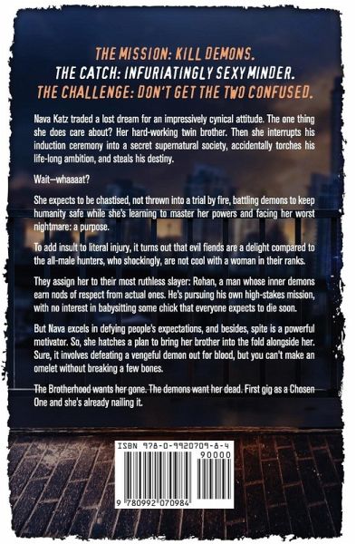 The mission: kill demons. The catch: infuriatingly sexy minder. The challenge: don't get the two confused. The Brotherhood wants her gone. The demons want her dead. First day as a Chosen One and she's already nailing it. Nava Katz is an expert at burying her lost dreams and wielding cynicism as her personal brand. Then she interrupts her twin brother's induction ceremony into a secret supernatural society, accidentally torches his life-long dream, and steals his destiny as a Chosen Demon Hunter. Oops? Suddenly she's got dangerous new powers she can't control, a centuries-old organization rooting for her to crash and burn, and her twin's life hanging in the balance. Her not-so-reassuring support? Rohan Mitra, the brilliant, maddeningly hot slayer whose inner demons earn nods of respect from actual ones. The sparks between them could power the entire Brotherhood's HQ-and the way he looks at her has nothing to do with supervision. With demons on her tail, sabotage at every turn, and her own doubts trying to take the wheel, staying alive means more than just survival. The real challenge is believing she's worthy of this power-and a second chance. Ready for snark, steam, and supernatural smackdowns? Nava's your girl. Read the complete series now!