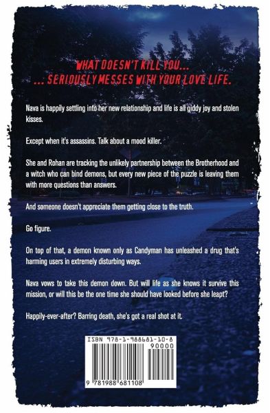 What doesn't kill you... ...seriously messes with your love life. Nava is happily settling into her new relationship and life is all giddy joy and stolen kisses. Except when it's assassins. Talk about a mood killer. She and Rohan are tracking the unlikely partnership between the Brotherhood and a witch who can bind demons, but every new piece of the puzzle is leaving them with more questions than answers. And someone doesn't appreciate them getting close to the truth. Go figure. On top of that, a demon known only as Candyman has unleashed a drug that's harming users in extremely disturbing…mehr