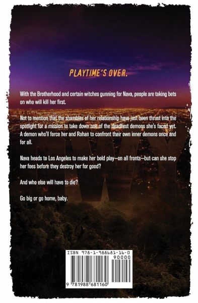 Playtime's over. With the Brotherhood and certain witches gunning for Nava, people are taking bets on who will kill her first. Not to mention that the shambles of her relationship have just been thrust into the spotlight for a mission to take down one of the deadliest demons she's faced yet. A demon who'll force her and Rohan to confront their own inner demons once and for all. Nava heads to Los Angeles to make her bold play-on all fronts-but can she stop her foes before they destroy her for good? And who else will have to die? Go big or go home, baby. Featuring a snarky heroine, kickass action, and spicy romance, this laugh-out-loud, deliciously addictive series sucker-punches you in the heart when you're not looking. Binge the complete series now!