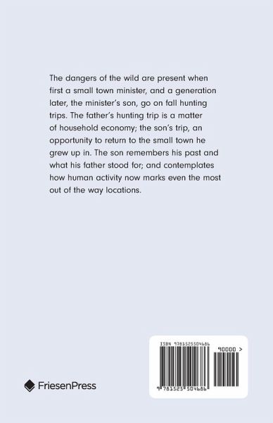 The dangers of the wild are present when first a small town minister, and a generation later, the minister's son, go on fall hunting trips. The father's hunting trip is a matter of household economy; the son's trip, an opportunity to return to the small town he grew up in. The son remembers his past and what his father stood for; and contemplates how human activity now marks even the most out of the way locations.