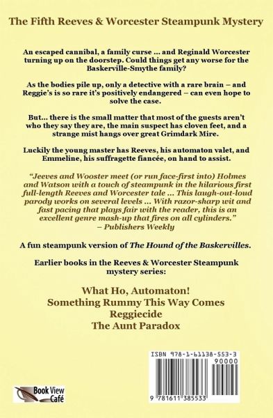 Wodehouse steampunk version of The Hound of the Baskervilles! An escaped cannibal, a family curse ... and Reginald Worcester turning up on the doorstep. Could things get any worse for the Baskerville-Smythe family? As the bodies pile up, only a detective with a rare brain - and Reggie's is so rare it's positively endangered - can even hope to solve the case. But... there is the small matter that most of the guests aren't who they say they are, the main suspect has cloven feet, and a strange mist hangs over great Grimdark Mire. Luckily the young master has Reeves, his automaton valet, and Emmeline, his suffragette fiancée, on hand to assist. This novel is the fifth Reeves & Worcester Steampunk mystery. The first four stories were published in the collection What Ho, Automata. "Jeeves and Wooster meet (or run face-first into) Holmes and Watson with a touch of steampunk in the hilarious first full-length Reeves and Worcester tale ... This laugh-out-loud parody works on several levels ... With razor-sharp wit and fast pacing that plays fair with the reader, this is an excellent genre mash-up that fires on all cylinders." - Publishers Weekly "A fun blend of P.G. Wodehouse, steampunk and a touch of Sherlock Holmes. Dolley is a master at capturing and blending all these elements. More than fascinating, this work is also rip-roaring fun!" - SF Revu