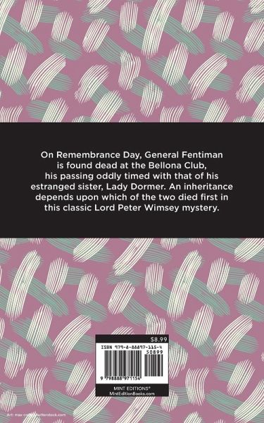 On Remembrance Day at the Bellona Club, ninety year old General Fentiman is found dead in an armchair. While certainly unpleasant in and of itself, stranger yet is the seemingly simultaneous death of his estranged sister, Lady Dormer. Just one day before the siblings' demise, Fentiman was called to his sister's deathbed to discuss a substantial inheritance that depended on which of the two died first. If it was the Lady, the half-million-pound fortune would be left to the brother and by virtue, his struggling grandchildren-but if it was the General, the sole inheritor would be a distant relative named Ann Dorland. And while Dr. Penberthy able to reveal how General Fentiman died, it is up to Lord Peter Wimsey to uncover when. An intriguing addition to a beloved series, Dorothy L. Sayers' The Unpleasantness at the Bellona Club (1928) is both a captivating mystery and compelling meditation on gentleman detective Lord Peter Wimsey himself. Since our inception in 2020, Mint Editions has kept sustainability and innovation at the forefront of our mission. Each and every Mint Edition title gets a fresh, professionally typeset manuscript and a dazzling new cover, all while maintaining the integrity of the original book. With thousands of titles in our collection, we aim to spotlight diverse public domain works to help them find modern audiences. Mint Editions celebrates a breadth of literary works, curated from both canonical and overlooked classics from writers around the globe.