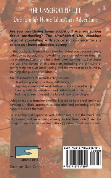 Are you considering home education? Are you curious about unschooling? The Unschooled Life combines personal storytelling with advice and guidance for any parent on a home education journey. In this book, Lizi Gambell tells how her eldest son became deeply unhappy at school, and how things transformed when they left the system and started to build their own learning life. Lizi shares the ups and downs of this decision, including the process of confronting her own conditioning, and the wonder to be found in learning alongside her children. The Unschooled Life includes chapters on: Developing your Education Philosophy; Juggling a family and work with self-care and wellbeing; Coping with other peoples' questions and criticism; Tackling screen time and the lure of new technologies. Using anecdotes from her own life, Lizi shows how a real family can develop a holistic approach to education and parenting, and live happily outside the box! Lizi is a remedial hypnotist, with a deep interest in the mind, self-confidence, and overcoming anxiety. In The Unschooled Life, she brings this unique perspective to the opportunities of unschooling.