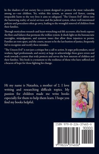 In the shadows of our society lies a system designed to protect the most vulnerable among us-our children. Yet, within this system, an unseen evil festers, causing irreparable harm to the very lives it aims to safeguard. "The Unseen Evil" delves into the harrowing reality of social services and the judicial system, where well-intentioned policies and procedures often go awry, leading to the wrongful removal of children from their families. Through meticulous research and heart-wrenching real-life accounts, this book exposes the flaws and failures that permeate the welfare system. It sheds light on the bureaucratic oversights, misjudgments, and systemic issues that allow these injustices to persist. Families are torn apart, and the courts, meant to be the last bastion of justice, frequently fail to recognize and rectify these mistakes. "The Unseen Evil" is not just a critique but a call to action. It urges policymakers, social workers, legal professionals, and society at large to acknowledge these grave errors and work towards a system that truly protects and serves the best interests of children and their families. This book is a testament to the resilience of those who have suffered and a beacon of hope for those fighting for change.