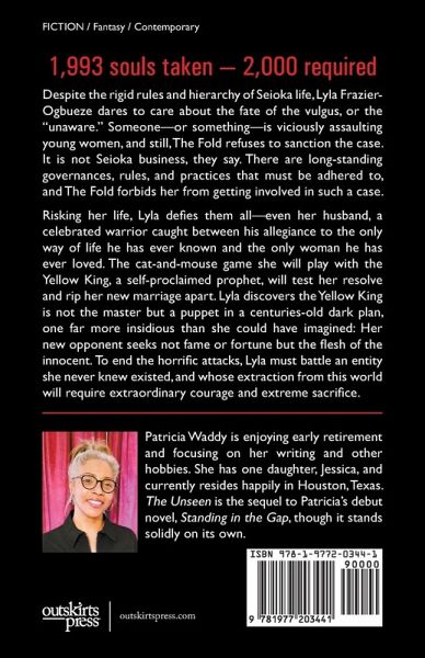 Despite the rigid rules and hierarchy of Seioka life, Lyla Frazier-Ogbueze dares to care about the fate of the vulgus, or the "unaware." Someone—or something—is viciously assaulting young women, and still, The Fold refuses to sanction the case. It is not Seioka business, they say. There are long-standing governances, rules, and practices that must be adhered to, and The Fold forbids her from getting involved in such a case. Risking her life, Lyla defies them all—even her husband, a celebrated warrior caught between his allegiance to the only way of life he has ever known and the only woman he has ever loved. The cat-and-mouse game she will play with the Yellow King, a self-proclaimed prophet, will test her resolve and rip her new marriage apart. Lyla discovers the Yellow King is not the master but a puppet in a centuries-old dark plan, one far more insidious than she could have imagined: Her new opponent seeks not fame or fortune but the flesh of the innocent. To end the horrific attacks, Lyla must battle an entity she never knew existed, and whose extraction from this world will require extraordinary courage and extreme sacrifice.