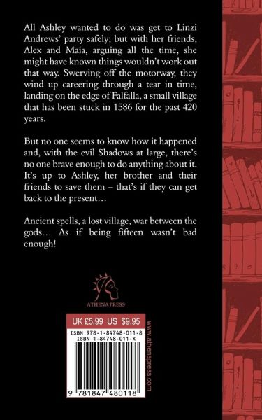 All Ashley wanted to do was get to Linzi Andrews' party safely; but with her friends, Alex and Maia, arguing all the time, she might have known things wouldn't work out that way. Swerving off the motorway, they wind up careering through a tear in time, landing on the edge of Falfalla, a small village that has been stuck in 1586 for the past 420 years. But no one seems to know how it happened and, with the evil Shadows at large, there's no one brave enough to do anything about it. It's up to Ashley, her brother and their friends to save them - that's if they can get back to the present. Ancient spells, a lost village, war between the gods. As if being fifteen wasn't bad enough!