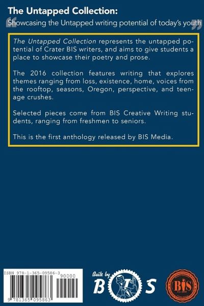 The Untapped Collection represents the untapped potential of Crater BIS writers, and aims to give students a place to showcase their poetry and prose. The 2016 collection features writing that explores themes ranging from loss, existence, home, voices from the rooftop, seasons, Oregon, perspective, and teenage crushes. Selected pieces come from BIS Creative Writing students, ranging from freshmen to seniors.