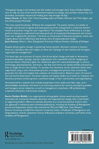 We must embrace change to achieve success in organizations and have a fulfilling life. Using stories and research, Karen Golden-Biddle provides a compelling framework with actionable strategies to integrate discovery for change with innovative impact.