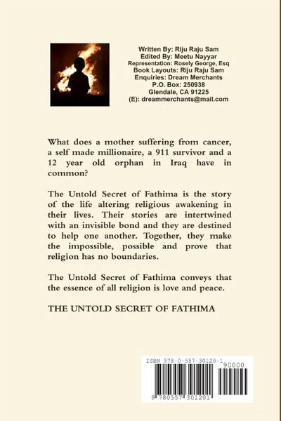 What does a mother suffering from cancer, a self made millionaire, a 911 survivor and a 12 year old orphan in Iraq have in common? The Untold Secret of Fathima is the story of the life altering religious awakening in their lives. Their stories are intertwined with an invisible bond and they are destined to help one another. Together, they make the impossible, possible and prove that religion has no boundaries. The Untold Secret of Fathima conveys that the essence of all religion is love and peace.