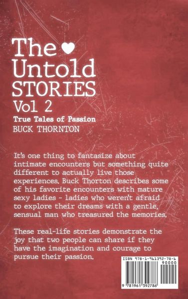It's one thing to fantasize about intimate encounters but something quite different to actually live those experiences. Buck Thornton describes some of his favorite encounters with mature sexy ladies - ladies who weren't afraid to explore their dreams with a gentle, sensual man who treasured the memories in Volume-2. These real-life stories demonstrate the joy that two people can share if they have the imagination and courage to pursue their passion.