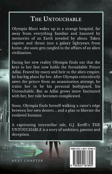 Olympia Blunt wakes up in a strange hospital, far away from everything familiar and haunted by memories of an Earth invaded by aliens. Taken captive and thrust into a galaxy lightyears from home, she soon gets tangled in the affairs of an alien civilization. Facing her new reality Olympia finds out that the keys to her fate now holds the formidable Prince Adlai. Feared by many and heir to the alien empire, he has big plans for her. After Olympia coincidently saves the prince from an assassination attempt, he trains her to be his personal bodyguard, his Untouchable. But as Adlai grows more fascinated with her, her role becomes complicated. Soon, Olympia finds herself walking a razor's edge between her own desires ... and a plan to liberate the enslaved humans. A captivating interstellar tale, G.J. Krefft's THE UNTOUCHABLE is a story of ambition, passion and deception.
