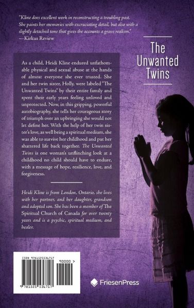 As a child, Heidi Kline endured unfathomable physical and sexual abuse at the hands of almost everyone she ever trusted. She and her twin sister, Holly, were labelled "The Unwanted Twins" by their entire family and spent their early years feeling unloved and unprotected. Now, in this gripping, powerful autobiography, she tells her courageous story of triumph over an upbringing she would not let define her. With the help of her twin sister's love, as well being a spiritual medium, she was able to survive her childhood and put her shattered life back together. The Unwanted Twins is one woman's unflinching look at a childhood no child should have to endure, with a message of hope, resilience, love, and forgiveness.