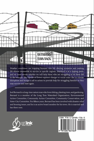 Weather conditions are trapping humans into life altering scenarios and making life almost impossible to survive in specific regions. Mankind is at a tipping point, and we must decide whether we will help those who are struggling or let them fall to the wayside. The Upside of Down explores changes to social order due to climate disruption and brings a call to action to provide help for struggling families so they may survive and start again.