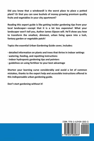 Did you know that a windowsill is the worst place to place a potted plant? Or, that you can save bushels of money growing premium quality fruits and vegetables in your city apartment? Gardener and landscaper, James Gipson, gives you all the information you'll every need to become the best urban gardener in your neighborhood. Reading this expert guide is like getting "insider" gardening tips from your local landscaper--except that it is a lot less expensive! What your landscaper won't tell you, Gipson will. He'll show you how to transform the smallest, dimmest, urban living space into a lush, fantasy garden or vegetable patch! If your living space receives at least 6 to 8 hours of sunlight per day you're good as gold -- and if it doesn't--Gipson will instruct you on how to set up lights that simulate sunlight so that you can still grow a bountiful garden. The essential urban gardening topics Gipson covers, includes: o detailed information on plants and trees that thrive in indoor settings o watering, feeding, and repotting instructions o indoor hydroponic gardening tips and pointers o guidelines on using fertilizer to your best advantage Since too much or too little water and light can kill plants, Gibson provides helpful lists of tips to streamline the watering and lighting process. At every turn, Gipson strives to break down complicated procedures into basic rules that are easy to follow and understand. Gipson clearly loves gardening and does his best to ensure that his readers grow to love it, too! Readers will find dozens of tips on growing healthy plants in just about every type of urban setting, including outside balconies. You'll shorten your learning curve considerably and avoid a lot of common mistakes, thanks to the expert help and accessible instructions offered in this indispensable urban gardening guide. Don't start gardening without it!