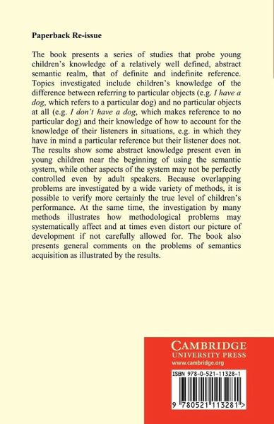 The book presents a series of studies that probe young children's knowledge of definite and indefinite reference.