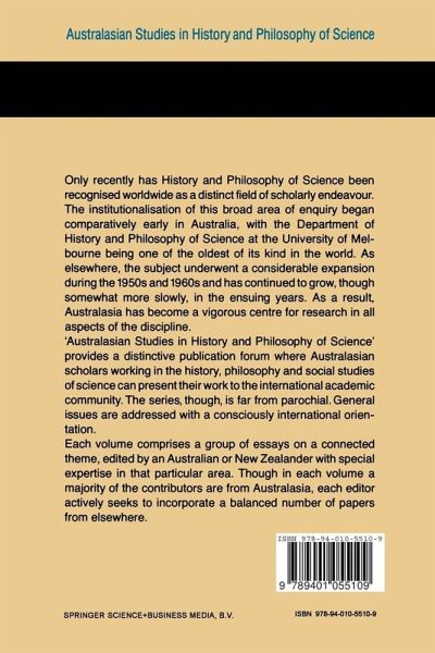 The institutionalization of History and Philosophy of Science as a distinct field of scholarly endeavour began comparatively earl- though not always under that name - in the Australasian region. An initial lecturing appointment was made at the University of Melbourne immediately after the Second World War, in 1946, and other appoint ments followed as the subject underwent an expansion during the 1950s and 1960s similar to that which took place in other parts of the world. Today there are major Departments at the University of Melbourne, the University of New South Wales and the University of W ollongong, and smaller groups active in many other parts of Australia and in New Zealand. 'Australasian Studies in History and Philosophy of Science' aims to provide a distinctive pUblication outlet for Australian and New Zealand scholars working in the general area of history, philosophy and social studies of science. Each volume comprises a group of essays on a connected theme, edited by an Australian or a New Zealander with special expertise in that particular area. Papers address general issues, however, rather than local ones; parochial topics are avoided. Further more, though in each volume a majority of the contributors is from Australia or New Zealand, contributions from elsewhere are by no means ruled out. Quite the reverse, in fact - they are actively encouraged wherever appropriate to the balance of the volume in question.