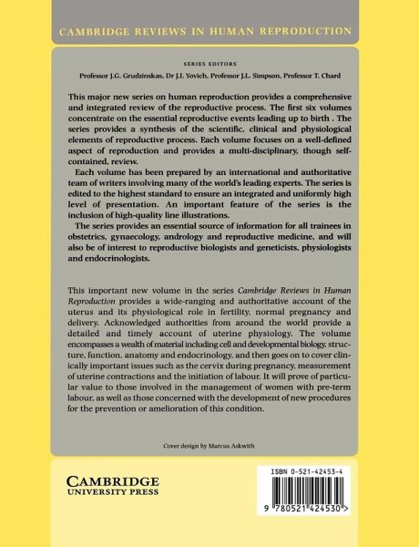 This important new volume in the series Cambridge Reviews in Human Reproduction provides a wide-ranging and authoritative account of the uterus and its physiological role in fertility, normal pregnancy and delivery. Acknowledged authorities from around the world provide a detailed and timely account of uterine physiology. The volume encompasses a wealth of material including cell and developmental biology, structure, function, anatomy and endocrinology, and then goes on to cover clinically important issues such as the cervix during pregnancy, measurement of uterine contractions and initiation of labour. It will prove of particular value to those involved in the management of women with pre-term labour, as well as those concerned with the development of new procedures for the prevention or amelioration of this condition.