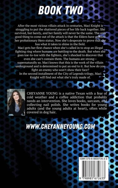 After the most vicious villain attack in centuries, Maci Knight is struggling to put the shattered pieces of her life back together. She survived, but barely, and her family will never be the same. The only good thing to come out of the attack is that the Elders have granted her probationary Hero status. Now she's desperate to prove that she has what it takes to shine in the field. Maci gets her first chance when she's called in to stop an illegal fighting ring where humans are battling to the death. But when she goes toe-to-toe with the fighters, she's shocked to discover that even she can't contain them. The humans are strong-supernaturally so. Maci knows that this is the work of the villain underground and is determined to put an end to it. But how do you fight an enemy who won't show their face? In the second installment of the City of Legends trilogy, Maci Knight will find out what she's truly made of.