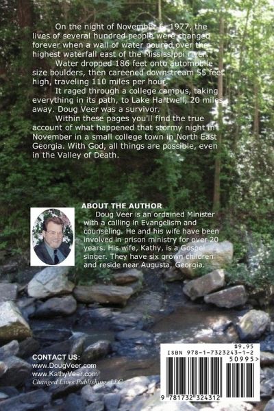 On the night of November 6, 1977, the lives of several hundred people were changed forever when a wall of water poured over the highest waterfall east of the Mississippi river. Water dropped 186 feet onto automobile size boulders, then careened downstream 55 feet high, traveling 110 miles per hour. It raged through a campus, taking everything in its path, to Lake Hartwell, 20 miles away. Doug Veer was a survivor. Within these pages you'll find the true account of what happened that stormy night in November in a small college town in North East Georgia. With God, all things are possible, even in the Valley of Death.