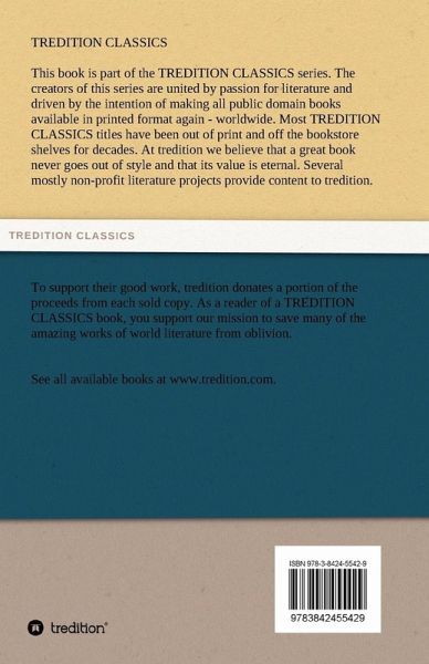 This book is part of the TREDITION CLASSICS series. The creators of this series are united by passion for literature and driven by the intention of making all public domain books available in printed format again - worldwide. At tredition we believe that a great book never goes out of style. Several mostly non-profit literature projects provide content to tredition. To support their good work, tredition donates a portion of the proceeds from each sold copy. As a reader of a TREDITION CLASSICS book, you support our mission to save many of the amazing works of world literature from oblivion.