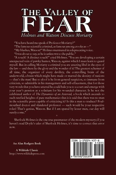 "You have heard me speak of Professor Moriarty? The greatest schemer of all time, the organizer of every deviltry, the controlling brain of the underworld, a brain which might have made or marred the destiny of nations -- That's genius, Watson. But if I am spared by lesser men, our day will surely come." Sherlock Holmes is the one true pastmaster of the modern mystery; if you haven't read Doyle's tales of Sherlock Holmes, it's time to correct that error now.