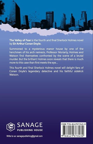 The Valley of Fear is the fourth and final Sherlock Holmes novel by Sir Arthur Conan Doyle. Summoned to a mysterious manor house by one of the henchmen of his arch nemesis, Professor Moriarty, Holmes and Watson find themselves confronted by the scene of a brutal murder. But the brilliant Holmes soon reveals that there is much more to this case than first meets the eye... This fourth and final Sherlock Holmes novel will delight fans of Conan Doyle's legendary detective and his faithful sidekick Watson.