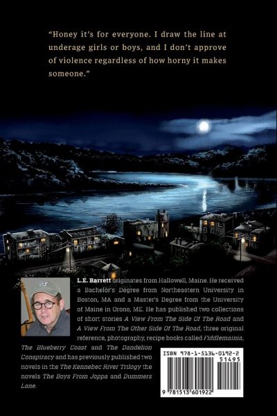 In the last book of the Kennebec River Trilogy the small city of Hallowell fights to save their community from an outside evil. The story of a small Maine river city in the early 1960s concludes with another murder, more sex, more mayhem, more troubled personal relationships, and a master plan that no one would anticipate. L. E. Barrett has expertly crafted an entertaining story that weaves seductive local characters, a place in time, and a unique storyline that is certain to keep you riveted to each page. The Valley of Good and Evil is a historical pulp fiction classic. A throwback to the trashy novels of the 1940s to 1960s where women craved love, men were tough, and violence was a business opportunity. A story that could have been written by the likes of Steinbeck or Doctorow. The book is insightful, funny, thrilling, and sexy without pretense. The author brings to life captivating characters, an original story, and breath-taking twists and turns. Like the first two books in The Kennebec River Trilogy (The Boys from Joppa and Dummers Lane), The Valley of Good and Evil is a quirky slice of adult fiction that provides an enjoyable read that is funny, scandalous and thought-provoking. From the first chapter to the last - Dip, Phil, Martha, Bunny, Rita, Connie, Big Robbie, Chief Buck, Emma and the other characters will fill your imagination with a unique place, nonconforming people, and a way of life that has passed but still exists within the pages of the Kennebec River Trilogy.