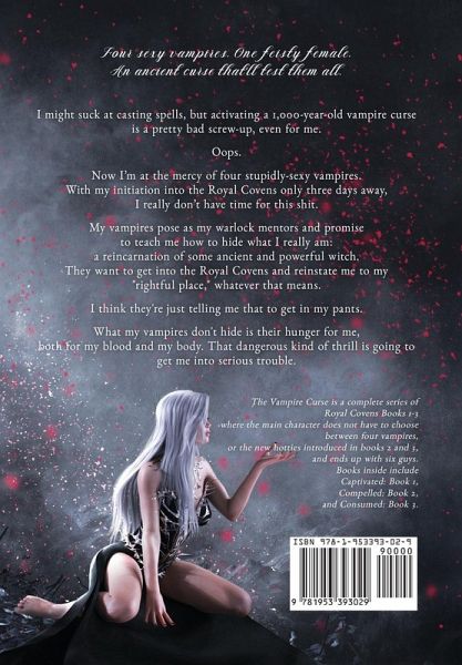 The Vampire Curse is the complete series of Royal Covens Books 1-3 where the main character does not have to choose between four vampires, or the new hotties introduced in books 2 and 3, and ends up with six guys.