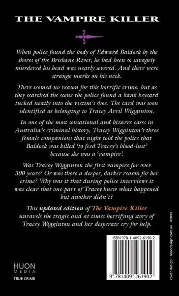 When police found the body of Edward Baldock by the shores of the Brisbane River, he had been so savagely murdered his head was nearly severed. And there were strange marks on his neck. There seemed no reason for this horrific crime, but as they searched the scene the police found a bank keycard tucked neatly into the victim's shoe. The card was soon identified as belonging to Tracey Avril Wigginton. In one of the most sensational and bizarre cases in Australia's criminal history, Tracey Wigginton's three female companions that night told the police that Baldock was killed 'to feed Tracey's blood-lust' because she was a 'vampire'. Was Tracey Wigginton the first vampire for over 300 years? Or was there a deeper, darker reason for her crime? Why was it that during police interviews it was clear that one part of Tracey knew what happened but another didn't? The Vampire Killer unravels the tragic and at times horrifying true story of Tracey Wigginton and her desperate cry for help.