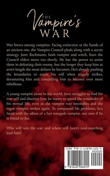 War brews among vampires. Facing extinction at the hands of an ancient one, the Vampire Council plods along with a secret strategy. Jaret Bachmann, both vampire and witch, fears the Council elders move too slowly. He has the power to assist them in defeating their enemy, but the longer they keep him at arm's length the more defiant he becomes. He's already pushing the boundaries to assert his will when tragedy strikes, devastating him and compelling him to become even more rebellious. A young vampire alone in the world, Jaret struggles to find his true self and discover how he wants to spend the remainder of his eternal life, even as the vampire war intensifies and the rogue vampire strikes again. To compound his problems, he's faced with the allure of a hot renegade vampire, not sure if he is friend or foe. Who will win the war, and where will Jaret's soul-searching lead him?