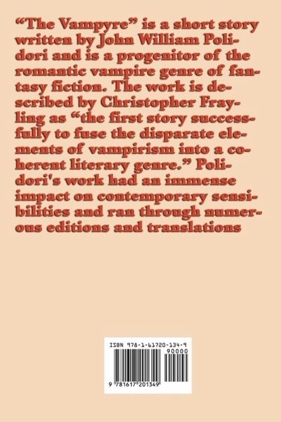 "The Vampyre" is a short story written by John William Polidori and is a progenitor of the romantic vampire genre of fantasy fiction. The work is described by Christopher Frayling as "the first story successfully to fuse the disparate elements of vampirism into a coherent literary genre." Polidori's work had an immense impact on contemporary sensibilities and ran through numerous editions and translations
