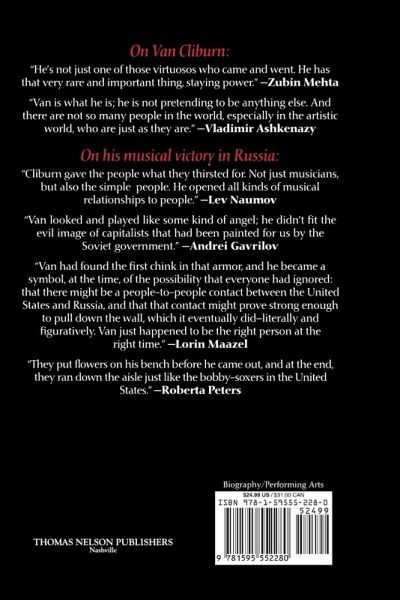 When a lanky, unpretentious, incredibly gifted, twenty-three-year-old Texan took Moscow by musical storm in 1958, it launched a sensational career that began at the age of thirteen and was to span over four decades. At the height of the Cold War, this friendly, open-hearted pianist enchanted the hearts of Americans and Russians alike with his playing that was more about "personal communications than exhibitionistic virtuosity." Winning the Soviet-sponsored Tchaikovsky International Piano Competition immediately thrust Van Cliburn into political as well as artistic pressures, attention, adulation, and scrutiny that might have sabotaged any young artist who lacked the confidence and conviction of Van Cliburn. In a meteoric career that made Van Cliburn a cultural hero tantamount to the Beatles, the facts became stranger than the fiction that abounded about his career that "fizzled a year or two after the Tchaikovsky competition," or about the near loss of an arm, or about his eleven-year retreat into privacy beginning in the late '70s. The myth that surrounded the name Van Cliburn in the '50s and '60s became legend with his triumphant re-entry in 1987?an event that was to epitomize the poetic nature of Van's entire life. Responding to an invitation to perform for Mikhail and Raisa Gorbachev at a state dinner, Van once again proved that music is indeed the universal language of understandng capable of uniting our diverse cultures. Bounding off the platform after his performance to kiss Nancy Reagan and Raisa Gorbachev, Van responded to Raisa's request for more music by playing the beloved Soviet song, "Moscow Nights"?the same nostalgic song he had learned and performed during his first incredible journey to Moscow in 1958. As millions of Americans watched on their television screens, the usual staid state dinner dissolved into a moving memory of Van singing along with the Gorbachevs as the whole room dissolved into tears. Russia and America joined hands and hearts in this one historical moment.