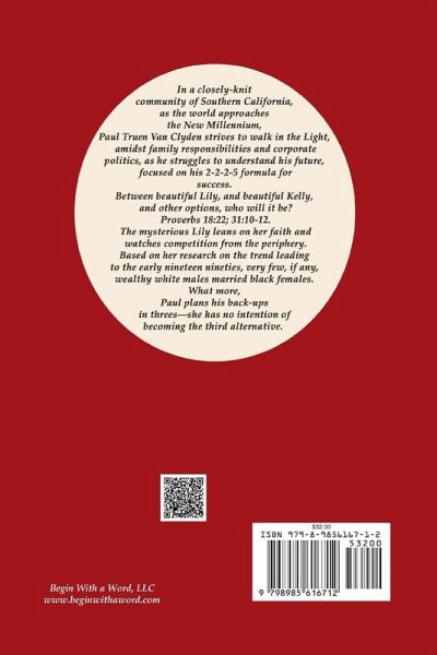 As the world approaches the new millenium, Paul Van Clyden, sole heir to the Van Clyden Enterprises, strives to walk in the Light. Facing both family responsibilities and corporate politics, he struggles to understand his future, as he focuses on his 2-2-2-5 formula for success. Living in a close-knit community in Southern California, Paul is expected to marry well. He seeks a virtuous wife, the right one who will complement his faith. His family favors Kelly, daughter of a family who have been neighbors and friends for a long time. But when he meets the beautiful mysterious Lily, from East Africa, and falls for her, his family is opposed to this stranger, "from the wrong side of the tracks." Lily leans on her faith and watches her competition from the periphery. She knows the trend in the early '90s is that very few, if any, wealthy white males marry black women. What's more, Paul plans his backups in threes - and she has no intention of becoming the third alternative.