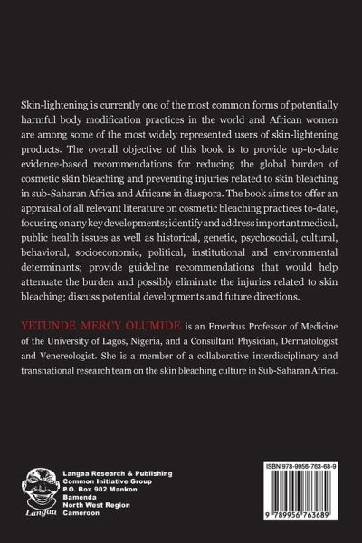 Skin-lightening is currently one of the most common forms of potentially harmful body modification practices in the world and African women are among some of the most widely represented users of skin-lightening products. The overall objective of this book is to provide up-to-date evidence-based recommendations for reducing the global burden of cosmetic skin bleaching and preventing injuries related to skin bleaching in sub-Saharan Africa and Africans in diaspora. The book aims to: offer an appraisal of all relevant literature on cosmetic bleaching practices to-date, focusing on any key developments; identify and address important medical, public health issues as well as historical, genetic, psychosocial, cultural, behavioural, socioeconomic, political, institutional and environmental determinants; provide guideline recommendations that would help attenuate the burden and possibly eliminate the injuries related to skin bleaching; discuss potential developments and future directions.