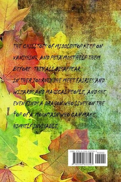 The Chilltoes of Middlestop are vanishing, and Peta has been asked to help them. With a Litte called Millit, they both go on an adventure to Fairyland to find a Veeda, but in the end they have to get the Disappearing Dragons help instead. On the adventure, Peta and Millit meet Fairies, Wizards and magical people.