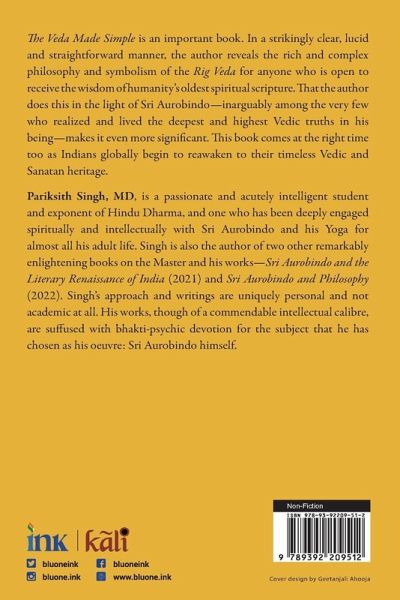 The Veda Made Simple is an important book. In a strikingly clear, lucid and straightforward manner, the author reveals the rich and complex philosophy and symbolism of the Veda for anyone who is open in mind and heart to receive the wisdom of humanity's oldest spiritual scripture. That the author does this in the light of Sri Aurobindo-inarguably among the very few who realised and lived the deepest and highest Vedic truths in their beings-makes it even more significant. This book comes at the right time too, as Indians globally begin to reawaken to their timeless Vedic and Sanatan heritage.