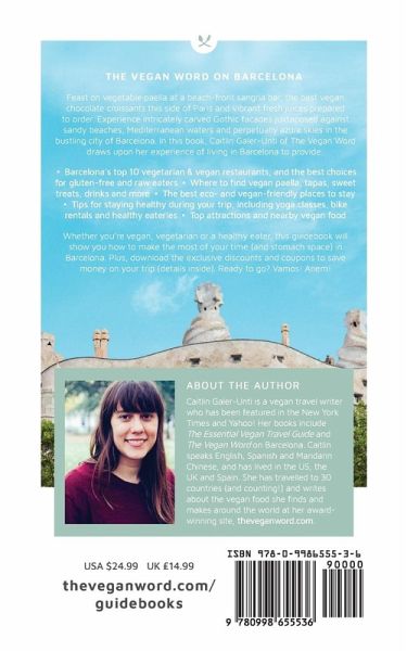 Feast on vegetable paella at a sangria bar next to the beach, the best vegan chocolate croissants this side of Paris and vibrant fresh juices prepared to order. Intricately carved Gothic facades juxtapose against sandy beaches, Mediterranean waters and perpetually azure skies in the bustling city of Barcelona. After over a year of living in Barcelona and founding its largest vegan meetup, Caitlin Galer-Unti of The Vegan Word guides you through the city in this book. Inside this guide you'll find: - Barcelona's top 10 vegetarian & vegan restaurants, and the best choices for gluten-free and raw eaters - Where to find vegan paella, tapas, sweet treats, drinks and more - The best eco- and vegan-friendly places to stay - Tips for staying healthy during your trip, including yoga classes, bike rentals and healthy eateries - Top attractions and where to find vegan food nearby Whether you're vegan, vegetarian or a healthy eater, this guidebook will show you how to make the most of your time (and stomach space) in Barcelona. Plus, download the exclusive discounts and coupons to save money on your trip (details inside). Ready to go? Vamos! Anem! What else will you find inside the book? - A packing list, and tips on finding vegan-friendly toiletries - Essential information on Barcelona, including how to get in and how to use public transport, money, safety, customs and language, a holiday calendar for the year, how to eat with the seasons and more - Traditional tapas that are usually vegan; dishes that you can easily make vegan no matter where you're eating (even if you end up in a non-vegan establishment) - Where to find vegan breakfast/brunch, planning and packing a picnic and what to eat in a pinch - 16 top attractions and sights, why they are popular and information on the sights, entry fees and history, plus vegetarian and vegan restaurants nearby - A full listing of all the vegan and vegetarian restaurants in Barcelona - Tips on saving money and inexpensive ways to dine - Shopping: a selection of eco-friendly clothing and accessories shops, vintage stores, vegan bag and shoe shops, vegan makeup stores and cruelty-free beauty salons - Entertainment: the best of music concerts and festivals, the arts, theatre, flamenco and cinema (including tips on finding films in English) - Day trips out of the city, including Tarragona, Sitges, Montserrat and Girona, plus plant-based dining options - Finding vegan food anywhere: where to buy food, a list of special vegan products and where to find them (e.g. nutritional yeast, vegan cheese and more) plus how to order vegan food in any cuisine - Translated phrases to ask for food - Plus, information on how to purchase additional resources for your trip to Barcelona, such as a vegan map of the city, vegan recipes and tips on travelling with non-vegan companions