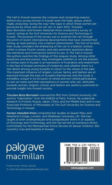 PART I: INTRODUCTION 1.1. Significance of the Study 1.2. Previous Research 1.3. Kuwaiti Society 1.4. Gulf University for Science and Technology 1.5. Methodology PART II: THE SURVEY 2.1. Survey Measures 2.2. Family Background 2.3. Limitations 2.3.1. General Context and Difficulties of the Survey 2.3.2. The 'East-West' Problem 2.4. Preliminary Conclusion PART III: RESULTS AND DISCUSSIONS 3.1. The Central Question: Why do you Veil? 3.1.1. First Findings: Answers of 'Covered Girls' 3.1.2. Second Findings: Answers of 'Uncovered Girls' 3.1.3. Third Findings: Answers of 'Male Students' 3.2. The 'Protect Women from Men' Argument 3.3. The Feminist Argument 3.4. Preliminary Conclusion 3.5. Religion as a Factor 3.5.1. Praying Attitudes 3.5.2. Knowledge of the Scriptures 3.5.3. The Qur'anic Passages 3.6. Social Interactions and Mutual Perceptions 3.6.1. Culture and Religion 3.6.2. Perception and Self-Perception 3.6.3. Respect and Virtue 3.6.4. Different Perceptions of 'Male Attention' 3.6.5. Combining the Hijab with Western Clothes and 'Veiling Fashion' 3.6.6. Does the Hijab Enhance the Woman's Beauty? 3.6.7. Preliminary Conclusion: Unequal Perceptions and the Question of Tolerance PART IV: THE GUILT/SHAME PARADIGM 4.1. Modesty and Fitna 4.2. Shame and Guilt in Islamic Culture 5. Conclusion 5.1. The Paradox of Veiling Fashion 5.2. Overall Evaluation of Responses Bibliography Appendix: The Questionnaires