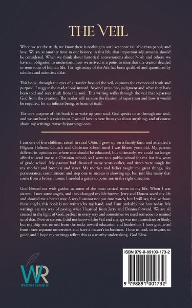 When we see the truth, we know there is nothing in our lives more valuable than people and love. We are at another time in our history, in this life, that important adjustments should be considered. When we think about historical conversations about Noah and others, we have an obligation to understand how we arrived at a point in time that the creator decided to reset most of human life. The legitimacy of the Ark has been qualified and quantified by scholars and scientists alike. This book, through the eyes of a traveler beyond the veil, captures the essences of truth and purpose. I suggest the reader look inward, beyond prejudice, judgment and what they have been told and seek truth from the soul. This writing walks through the veil that separates God from the creation. The reader will explore the illusion of separation and how it would be required, for an infinite being, to learn of itself. The core purpose of this book is to wake up your soul. God speaks to us through our soul, and we can hear his voice in us. I would love to hear from you about anything, and of course about my writings. www.thejourneygs.com