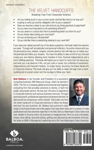 ¿ Are you feeling stuck in your current career and feel like there is no way out? ¿ Is going to work just another obligation with no joy or passion? ¿ Have you become a slave to your job and are you living paycheck to paycheck? ¿ Do you have a burning desire to do something different? ¿ Are you aware or curious that there is something better out there for you? ¿ Do you dream about being your own boss? ¿ Are you achieving your full potential? ¿ Do you feel like there is something missing in your work life? If you have ever asked yourself any of the above questions, this book holds the answers you seek. Through self-actualization and personal reflection, the author shares with you his personal journey, wisdom, insights, and key lessons that will help you to realize your full potential and follow your dreams. You have the ability to take control of your life and create your own destiny allowing more freedom of time, financial independence and a more fulfilling existence. This book will inspire you to reach for more than the status quo and what you truly deserve in life, not just a job or career, but a lifetime of excitement, independence and financial freedom, no longer being bound by the Velvet Handcuffs of Corporate America. This book will give you the skills to make the leap from a mind-numbing job to a great career and the courage to follow your heart.