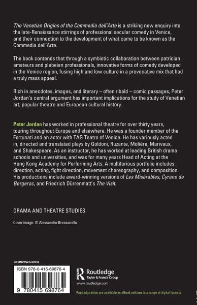 The Venetian Origins of the Commedia dell'Arte is a striking new enquiry into the late-Renaissance stirrings of professional secular comedy in Venice, and their connection to the development of what came to be known as the Commedia dell'Arte. The book contends that through a symbiotic collaboration between patrician amateurs and plebeian professionals, innovative forms of comedy developed in the Venice region, fusing 'high' and 'low' culture in a provocative mix that had a truly mass appeal. Rich with anecdotes, diary entries and literary - often ribald - comic passages, Peter Jordan's central argument has important implications for the study of Venetian art, popular theatre and European cultural history.