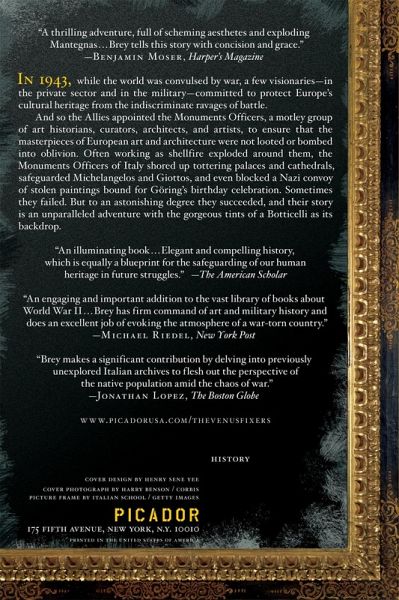 In 1943, while the world was convulsed by war, a few visionaries -- in the private sector and in the military -- committed to protect Europe's cultural heritage from the indiscriminate ravages of World War II. In the midst of the conflict, the Allied Forces appointed the monuments officers-a motley group of art historians, curators, architects, and artists-to ensure that the great masterworks of European art and architecture were not looted or bombed into oblivion. The journalist Ilaria Dagnini Brey focuses her spellbinding account on the monuments officers of Italy, quickly dubbed "the Venus Fixers" by bemused troops. Working on the front lines in conditions of great deprivation and danger, these unlikely soldiers stripped the great galleries of their incomparable holdings and sent them into safety by any means they could. They worked with skeptical army strategists to make sure air raids didn't take out the heart of an ancient city, and patched up Renaissance palazzi and ancient churches whose lead roofs were sometimes melted away by the savagery of the attacks. Sometimes they failed. But to an astonishing degree, they succeeded, and anyone who marvels at Italy's artistic riches today is witnessing their handiwork. In the course of her research, Brey gained unprecedented access to private archives and primary sources, and the result is a book at once thorough and grandly entertaining-a revelatory take on a little-known chapter of World War II history. The Venus Fixers is an adventure story with the gorgeous tints of a Botticelli landscape as its backdrop.