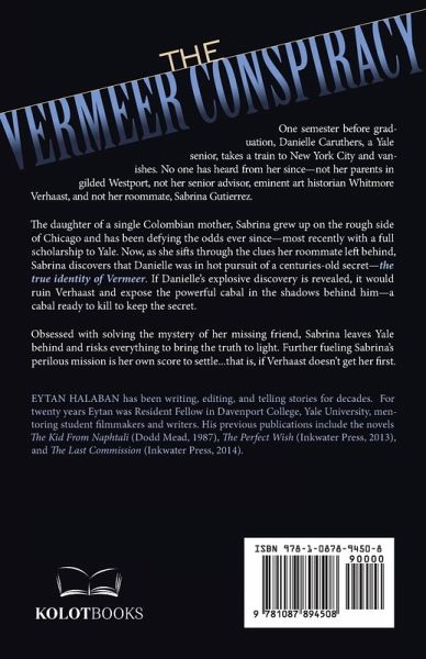 One semester before graduation, Danielle Caruthers, a Yale senior, takes a train to New York City and vanishes. No one has heard from her since-not her parents in gilded Westport, not her senior advisor, eminent art historian Whitmore Verhaast, and not her roommate, Sabrina Gutierrez. The daughter of a single Colombian mother, Sabrina grew up on the rough side of Chicago and has been defying the odds ever since-most recently with a full scholarship to Yale. Now, as she sifts through the clues her roommate left behind, Sabrina discovers that Danielle was in hot pursuit of a centuries-old secret-the true identity of Vermeer. If Danielle's explosive discovery is revealed, it would ruin Verhaast and expose the powerful cabal in the shadows behind him-a cabal ready to kill to keep the secret. Obsessed with solving the mystery of her missing friend, Sabrina leaves Yale behind and risks everything to bring the truth to light. Further fueling Sabrina's perilous mission is her own score to settle...that is, if Verhaast doesn't get her first.