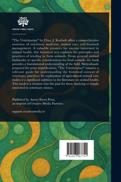 "The Veterinarian" by Chas. J. Korinek offers a comprehensive overview of veterinary medicine, animal care, and livestock management. A valuable resource for anyone interested in animal health, this historical text explores the principles and practices of tending to farm animals. From general animal husbandry to specific considerations for food animals, the book provides a foundational understanding of the field. Meticulously prepared for print republication, "The Veterinarian" remains a relevant guide for understanding the historical context of veterinary practices. Its exploration of agricultural animal care makes it a significant addition to the literature on animal health. This book is a window into the past for those studying or simply interested in veterinary science. This work has been selected by scholars as being culturally important, and is part of the knowledge base of civilization as we know it. This work is in the public domain in the United States of America, and possibly other nations. Within the United States, you may freely copy and distribute this work, as no entity (individual or corporate) has a copyright on the body of the work. Scholars believe, and we concur, that this work is important enough to be preserved, reproduced, and made generally available to the public. We appreciate your support of the preservation process, and thank you for being an important part of keeping this knowledge alive and relevant.