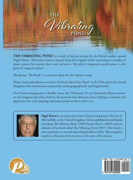 The Vibrating Pond is a work of fiction written by the British author named Nigel Howse. The book's content features forty-five original 'works' consisting of a medley of prose, poems, but mainly short story narratives. The style is imaginative poetic prose, in the genre of 'magical realism.' The phrase: 'The Pond' is a common idiom for the Atlantic ocean. Water unites and enhances our lives.On both sides of the 'Pond,' in the USA and in the United Kingdom, this simultaneous connection works geographically and linguistically! Our Human imagination is flexible, hence the 'Vibrations. It's our functional, fluent resource we all recognise and utilize, both in the personal and subjective sense, helping us interpret and appreciate this truly inspiring and inspirational world we all live in.