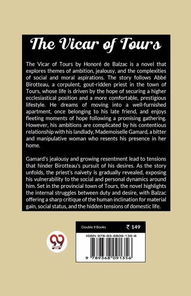 The Vicar of Tours by Honoré de Balzac is a novel that explores themes of ambition, jealousy, and the complexities of social and moral aspirations. The story follows Abbé Birotteau, a corpulent, gout-ridden priest in the town of Tours, whose life is driven by the hope of securing a higher ecclesiastical position and a more comfortable, prestigious lifestyle. He dreams of moving into a well-furnished apartment, once belonging to his late friend, and enjoys fleeting moments of hope following a promising gathering. However, his ambitions are complicated by his contentious relationship with his landlady, Mademoiselle Gamard, a bitter and manipulative woman who resents his presence in her home. Gamard's jealousy and growing resentment lead to tensions that hinder Birotteau's pursuit of his desires. As the story unfolds, the priest's naivety is gradually revealed, exposing his vulnerability to the social and personal dynamics around him. Set in the provincial town of Tours, the novel highlights the internal struggles between duty and desire, with Balzac offering a sharp critique of the human inclination for material gain, social status, and the hidden tensions of domestic life.